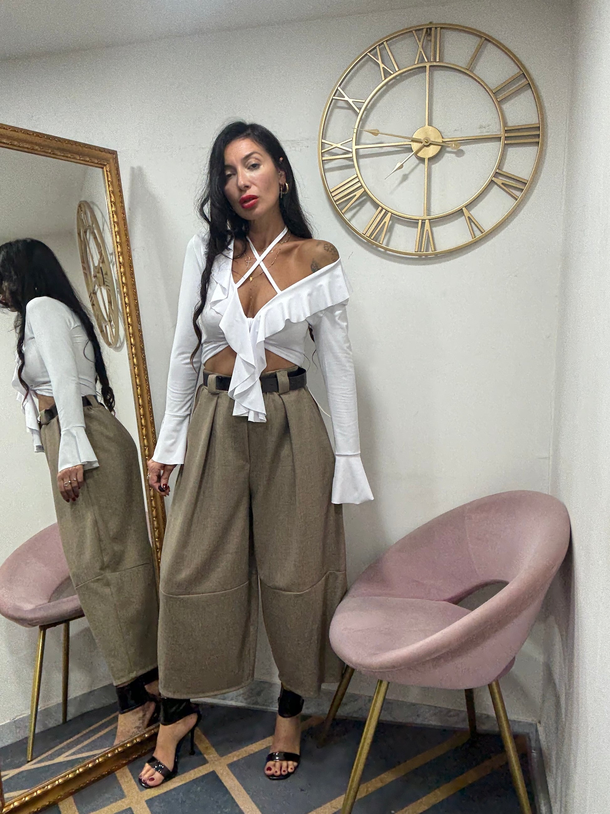 Tessuto misto vestibilità elastico sul retro molto abbondante senza aperture