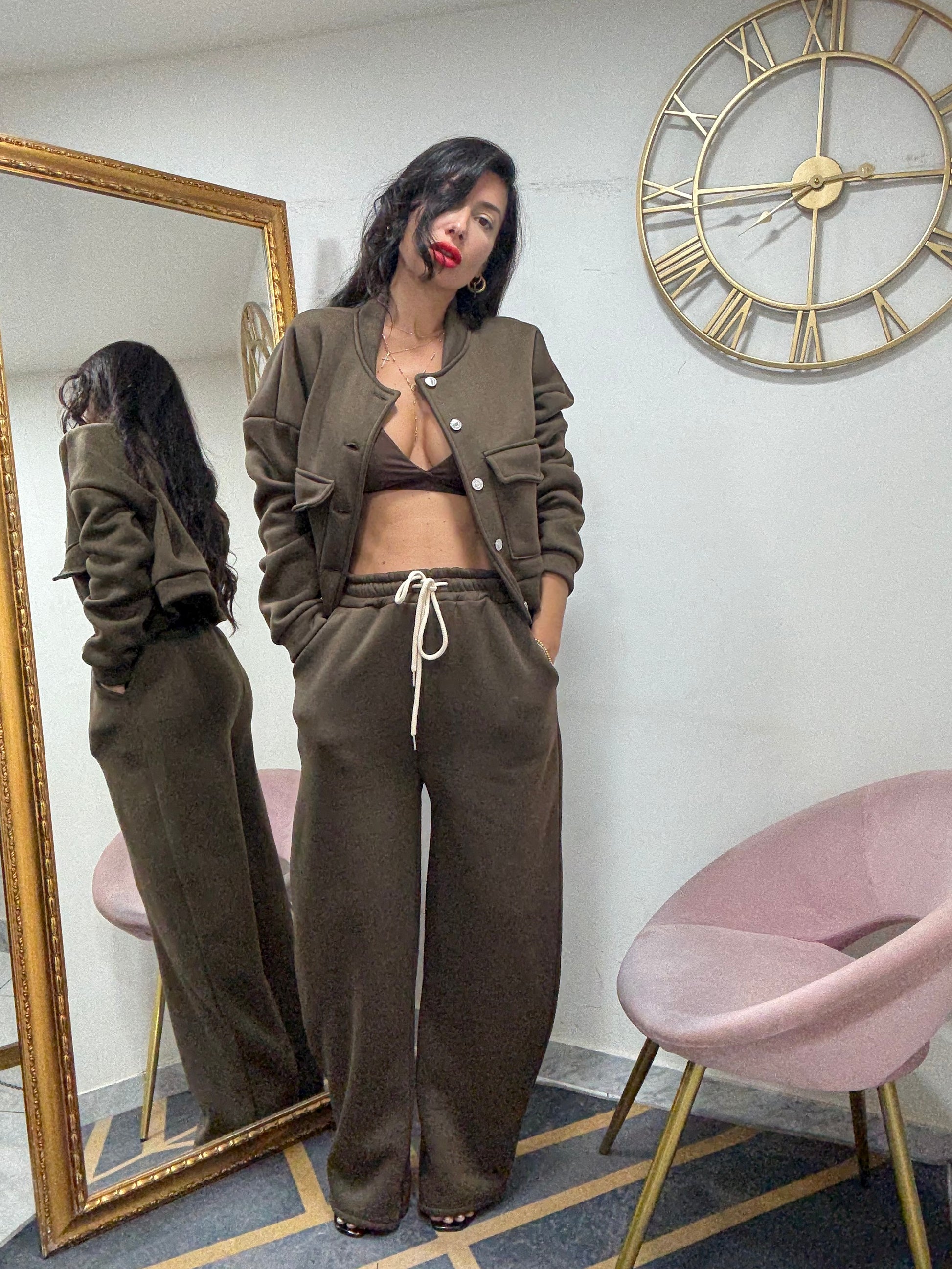 Tessuto felpa super caldo pantalone con elastico e coulisse in corda