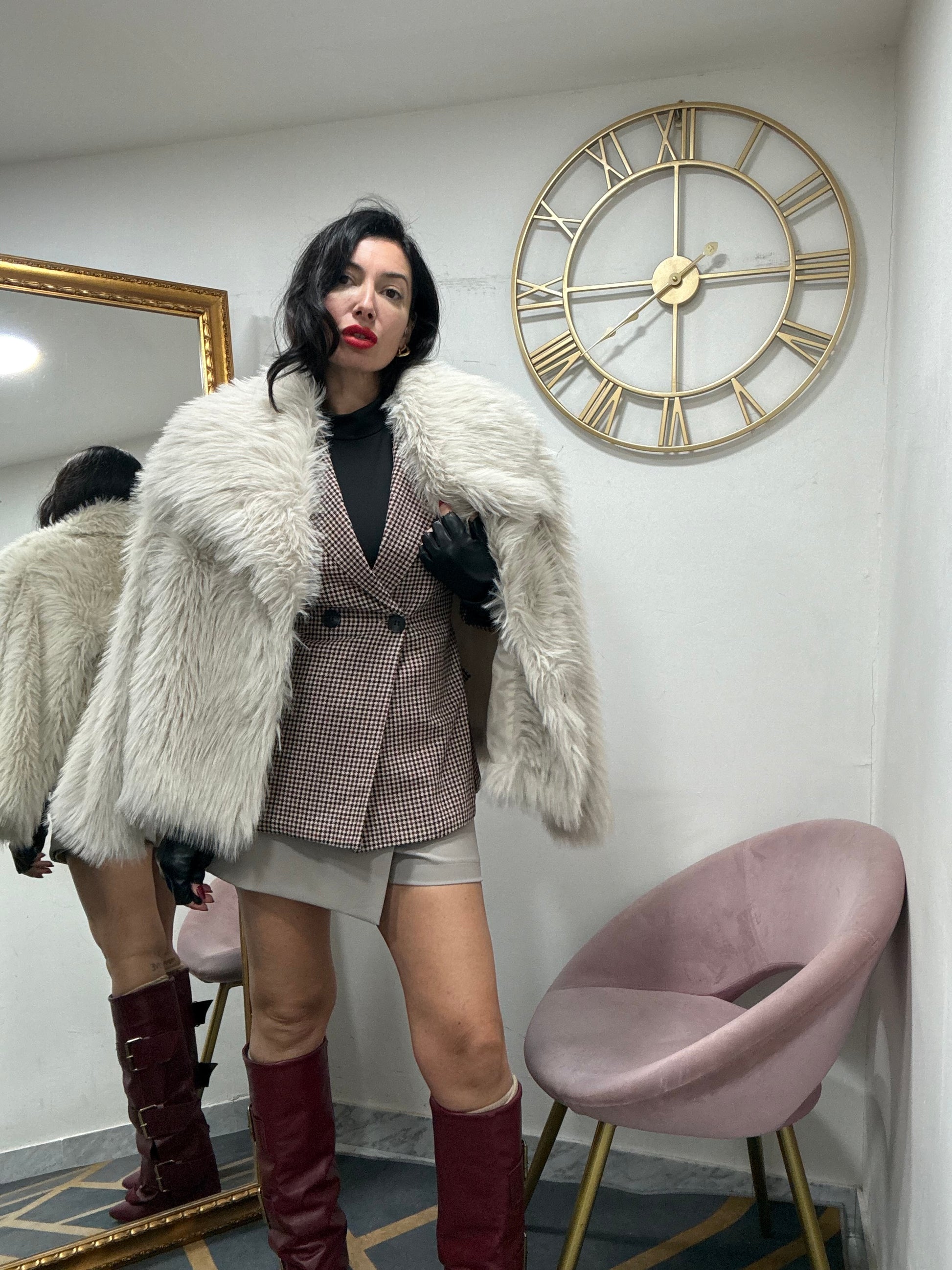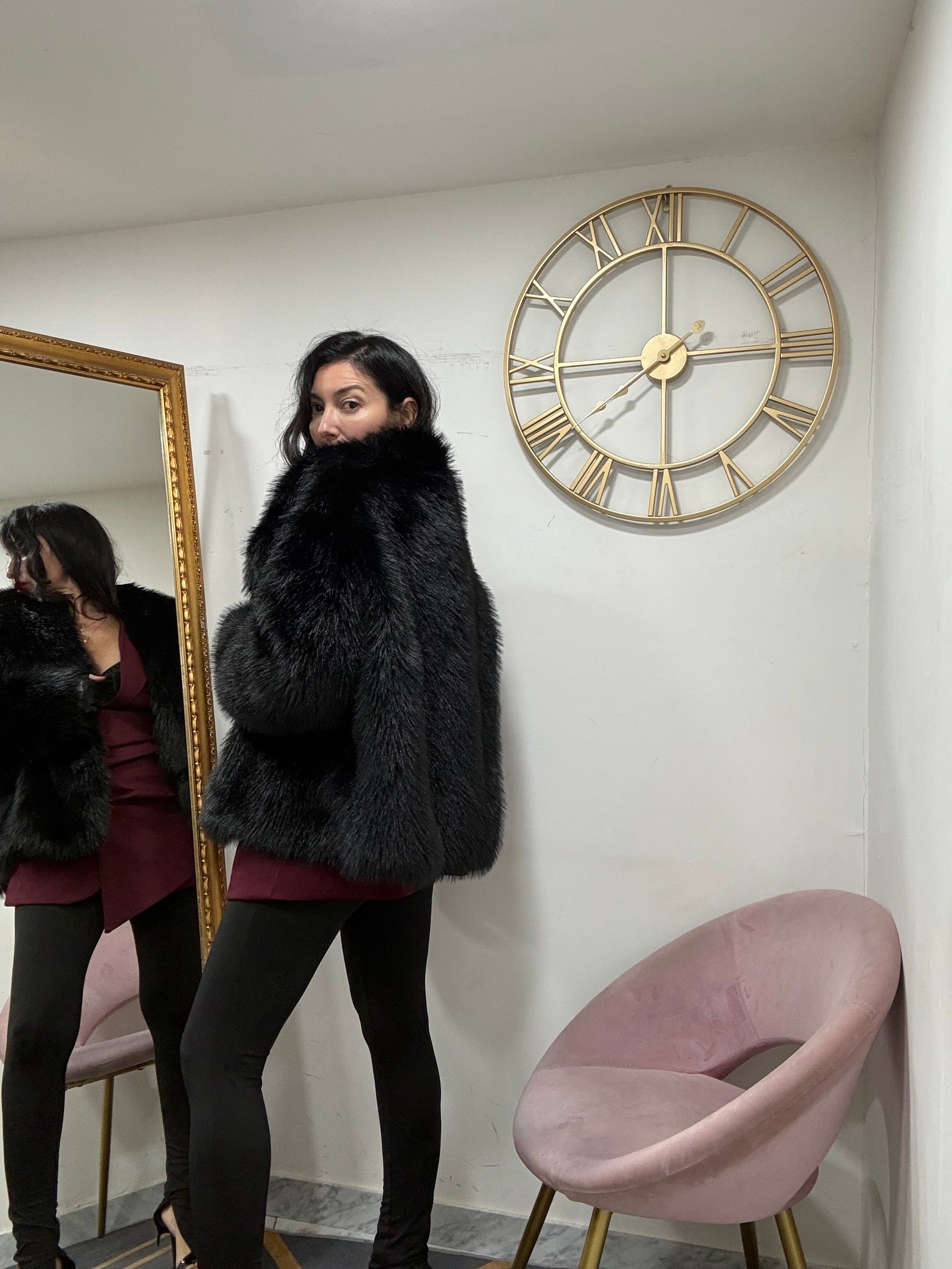 Eco pelliccia con ganci e tasche foderata