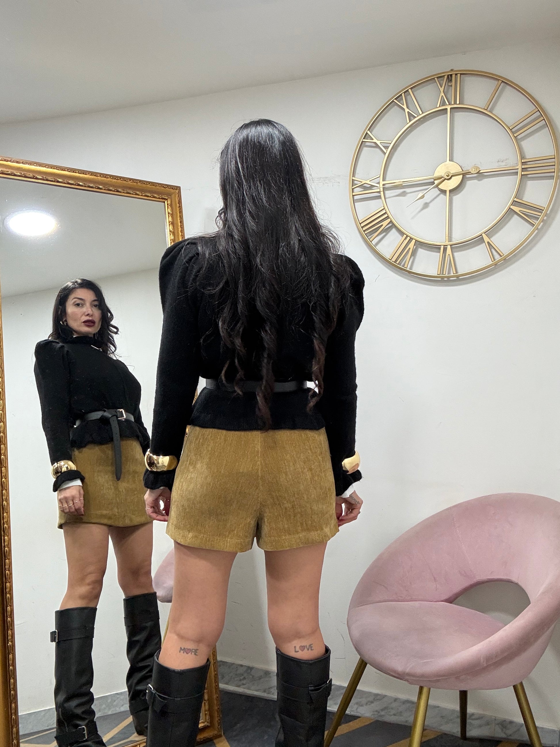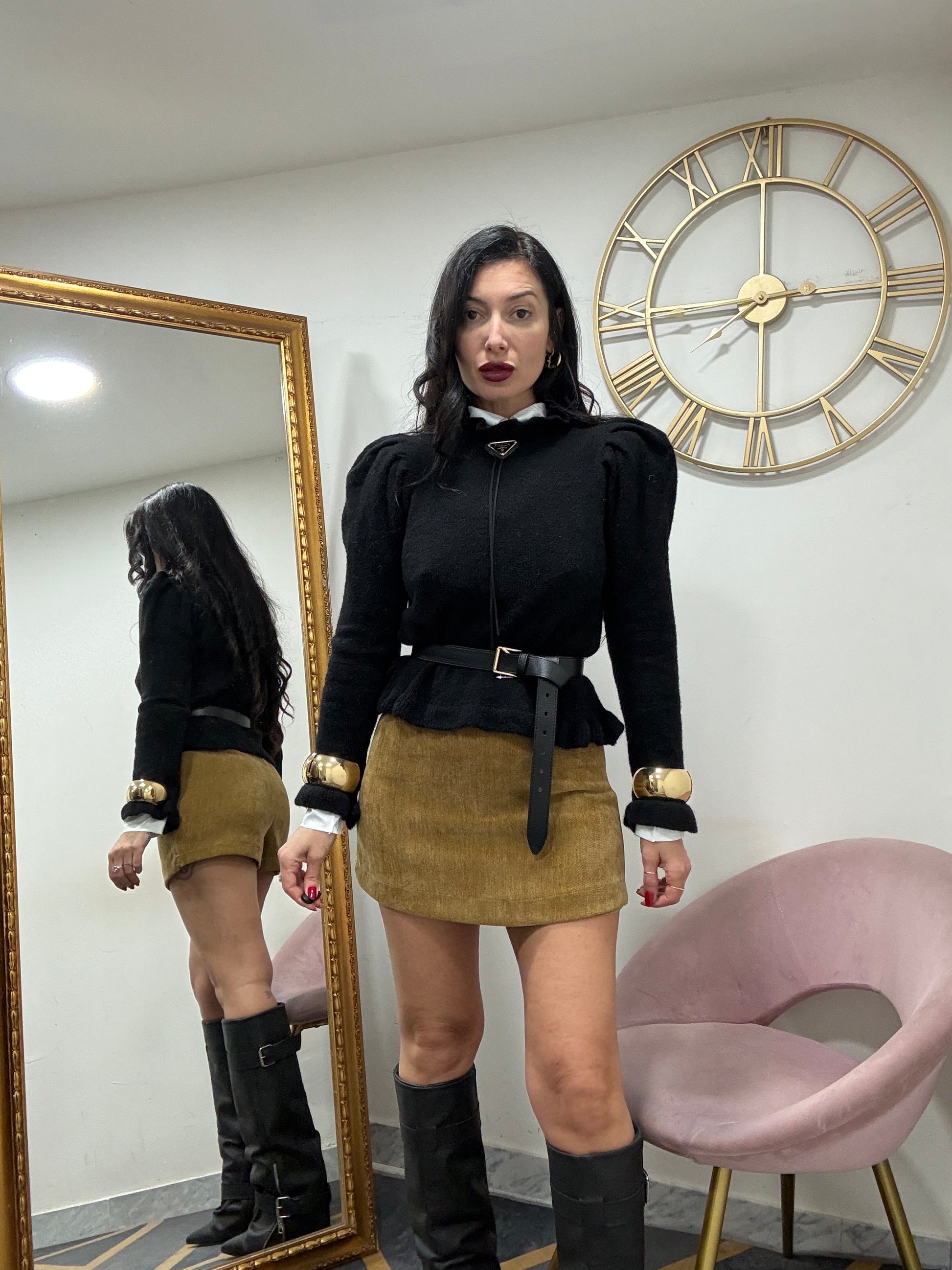 Tessuto lana con manica a palloncino e rousce collo e polsi