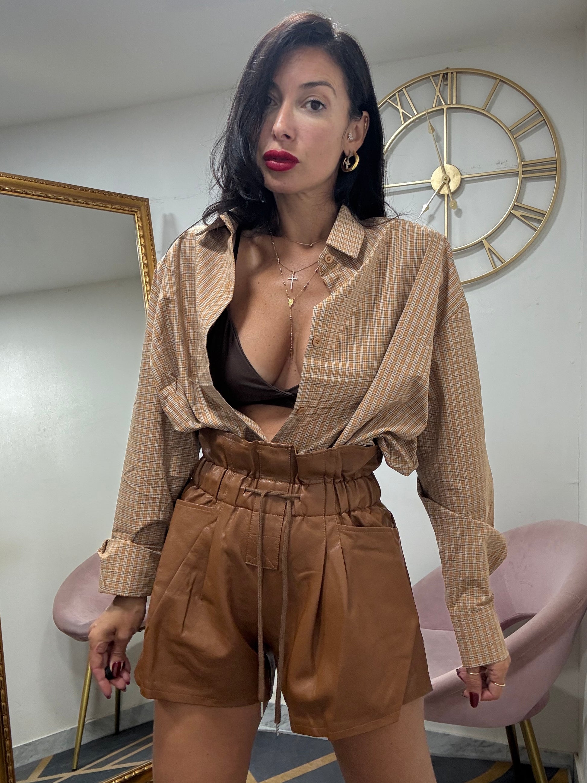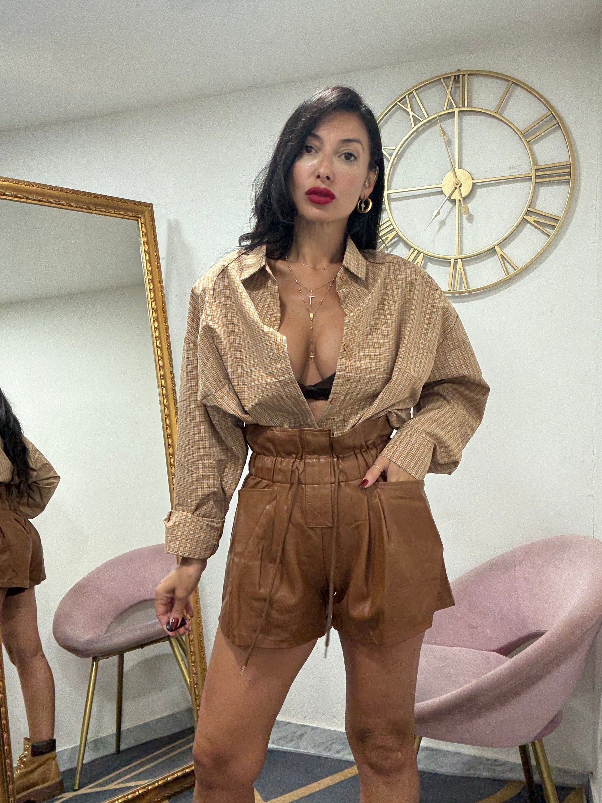 Tessuto ecopelle con elastico e coulisse in vita senza aperture