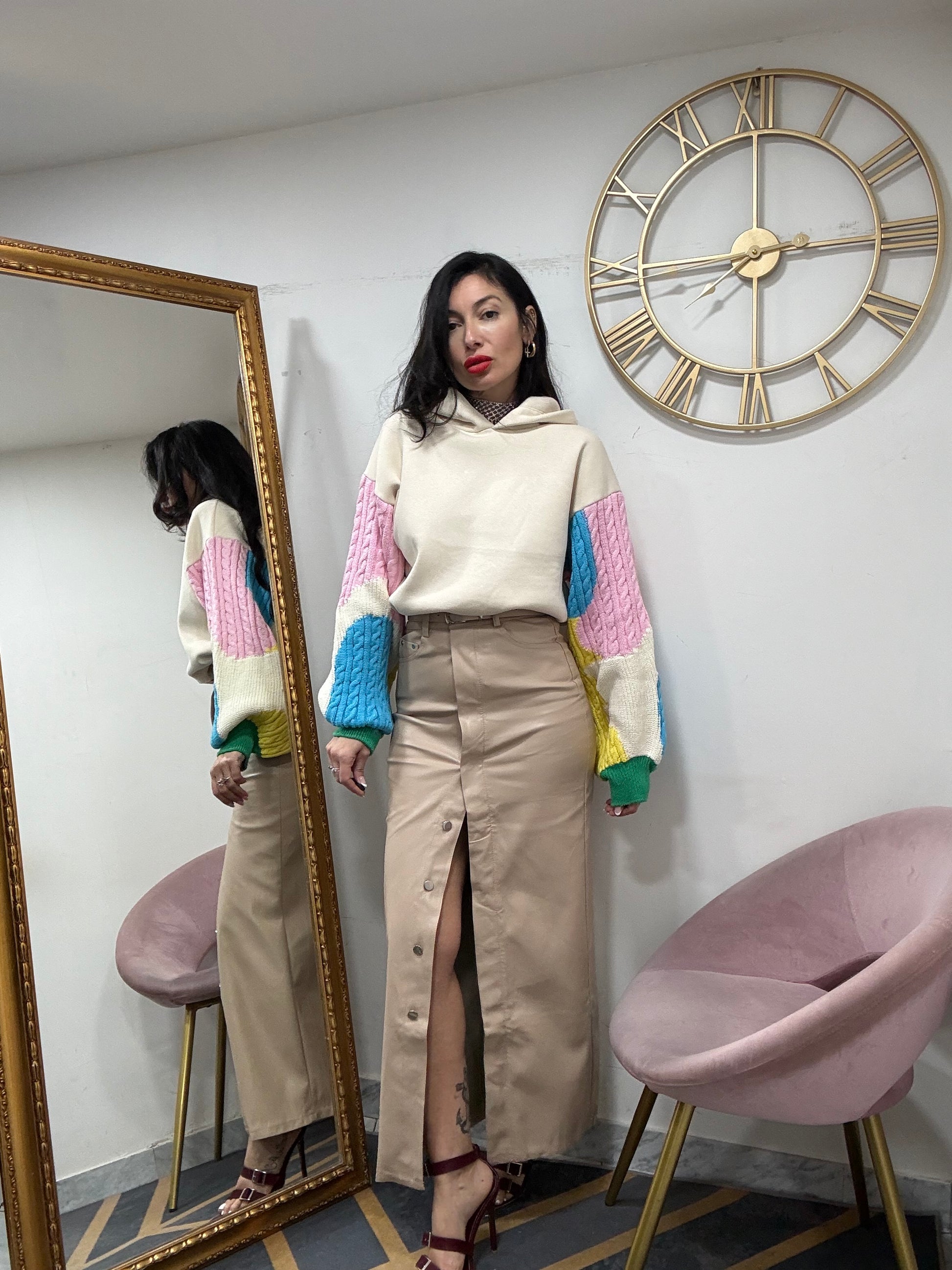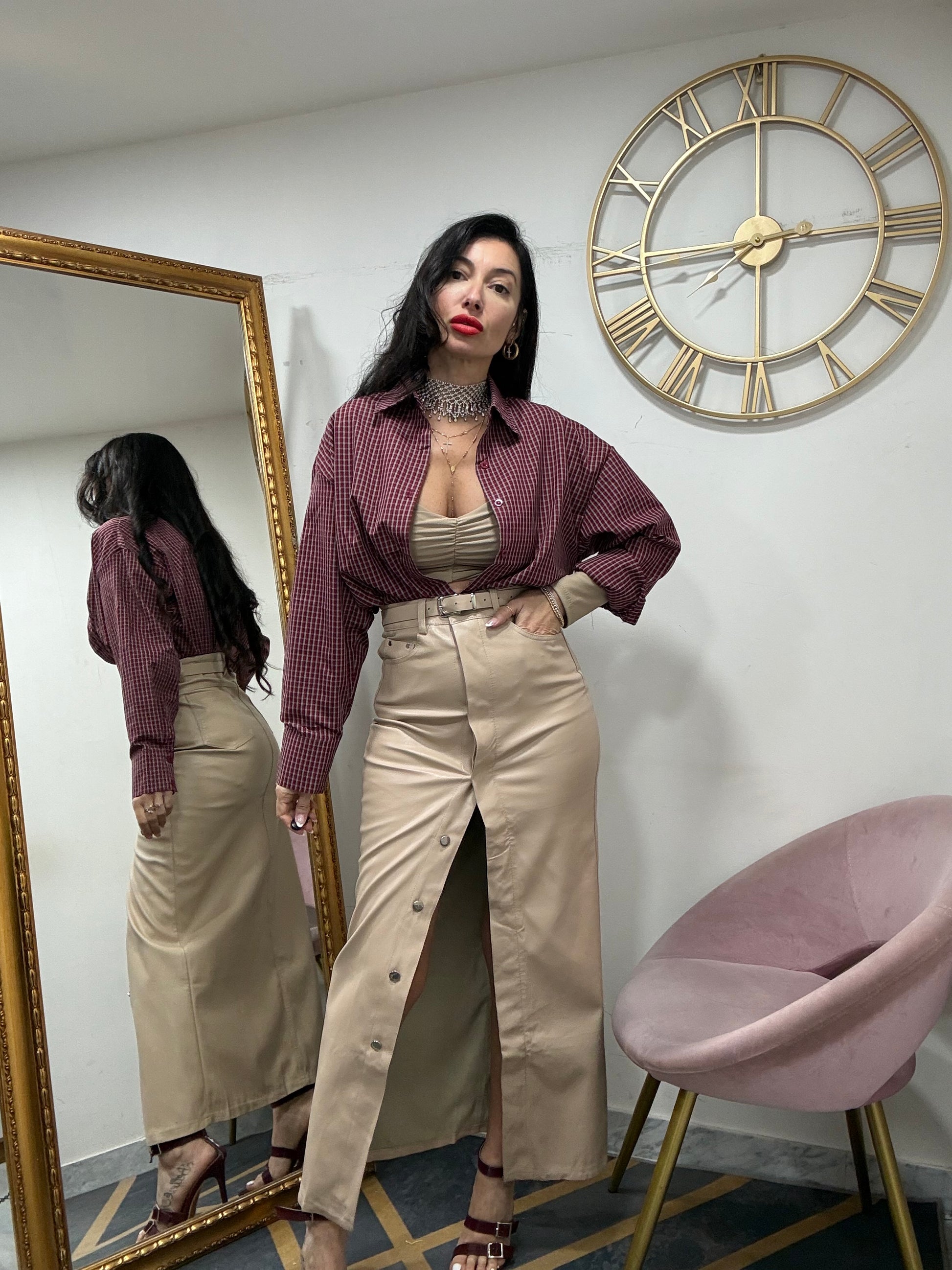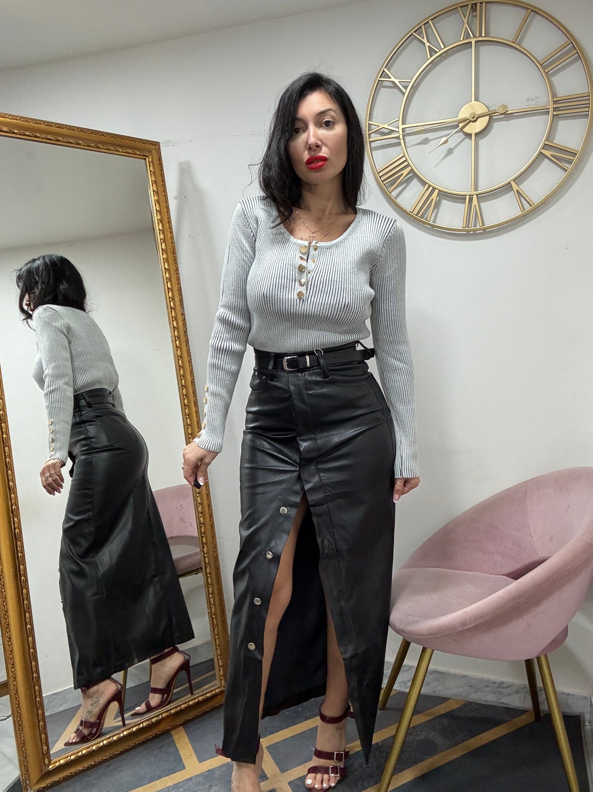 Tessuto ecopelle elastico con bottoni a scomparsa e cinta compresa